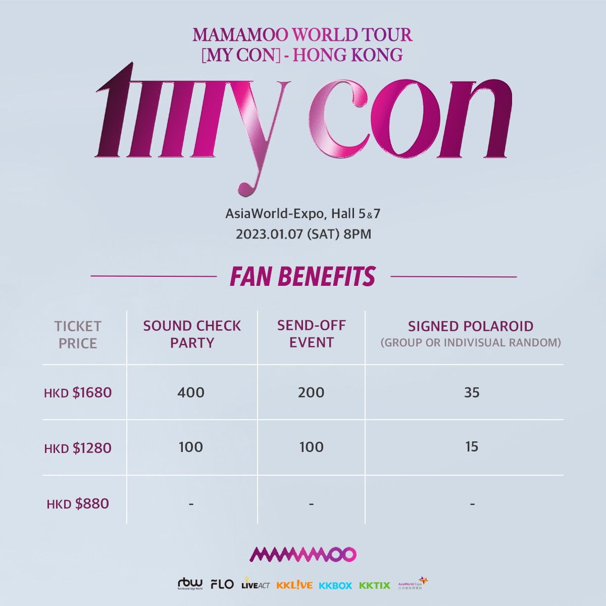 Hong Kong, 2022 – Since the announcement of the popular Korean girl group MAMAMOO‘s world tour, Hong Kong fans had been looking forward to the news about the Hong Kong show. KKLIVE officially announced today that MAMAMOO WORLD TOUR [MY CON] – HONG KONG” will be held on January 7, 2023 at AsiaWorld-Expo Hall 5&7. They will be the first Korean artist to hold a concert in Hong Kong in the year 2023 and it will be their second visit to Hong Kong since 2019.