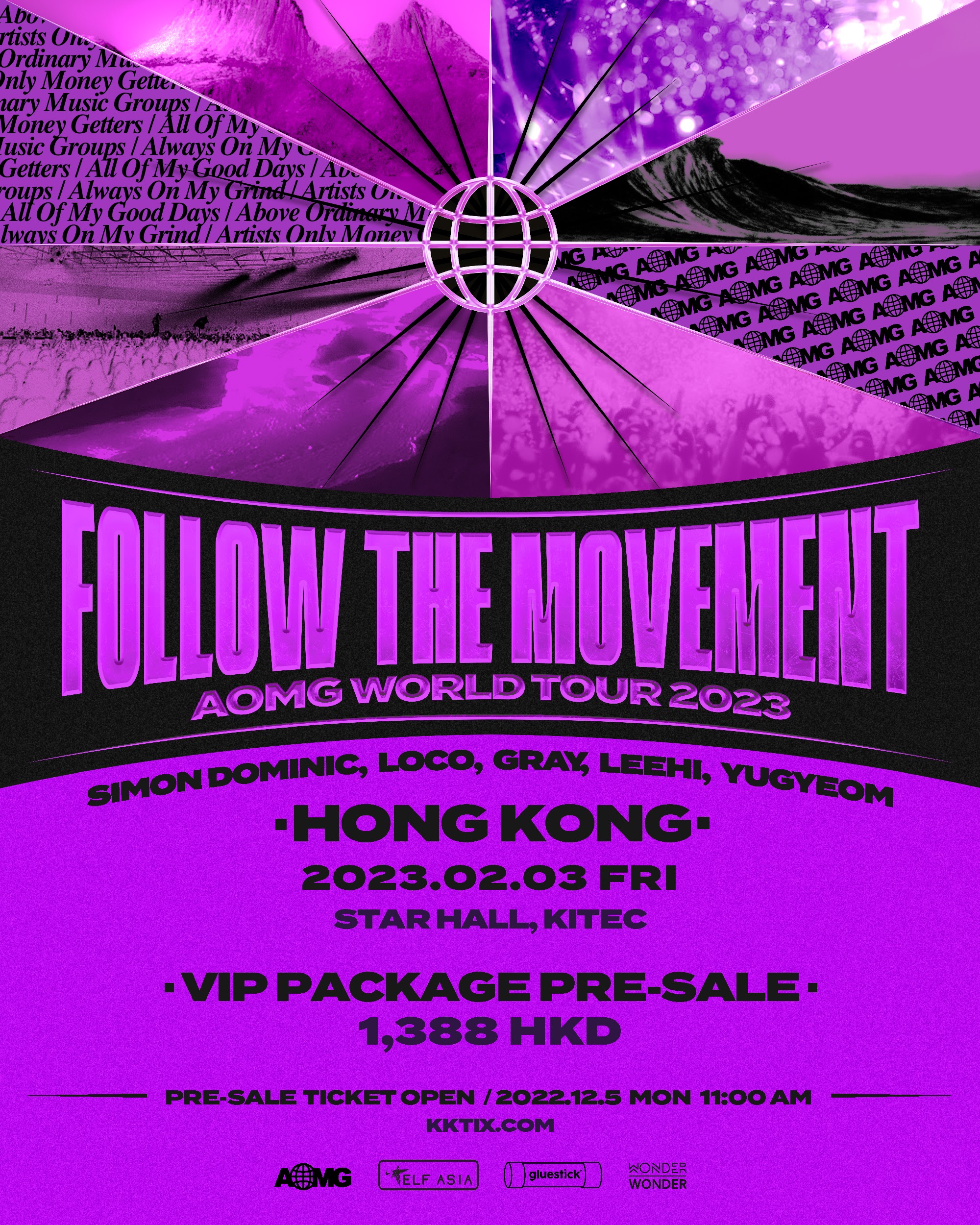 [FOLLOW THE MOVEMENT] AOMG WORLD TOUR 2023 will be jointly performed by AOMG‘s artists Simon Dominic, Loco, Gray, Leehi and Yugyeom. They will visit Singapore, Bangkok, Manila, Tokyo, Osaka, Hong Kong and Taipei, etc.