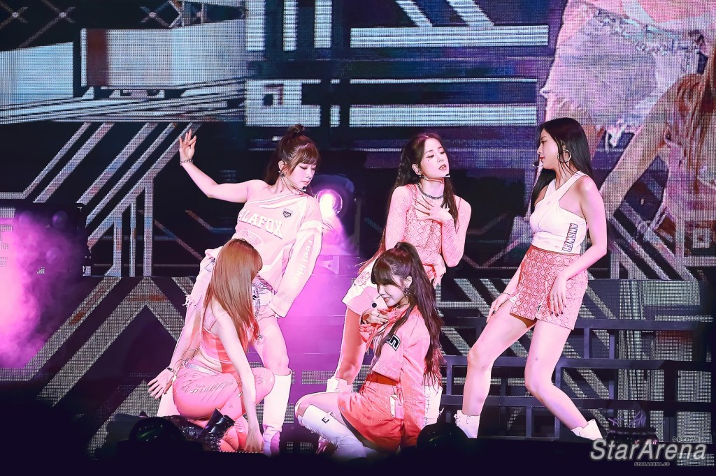 On the 25th, five members Chorong, Bomi, Eunji, Namjoo, and Hayoung appeared on the stage wearing pink costumes and started the concert with the hit song Dilemma. The venue was filled with a sea of pink colour and that lit up the venue beautifully. During the introduction, Pandas requested Eunji to speak in Korean instead of English. On the other hand, Pandas requested for the youngest member, Hayoung, to converse in English to which she acceded to their request. It was indeed a very interesting conversation between the members and the audience.