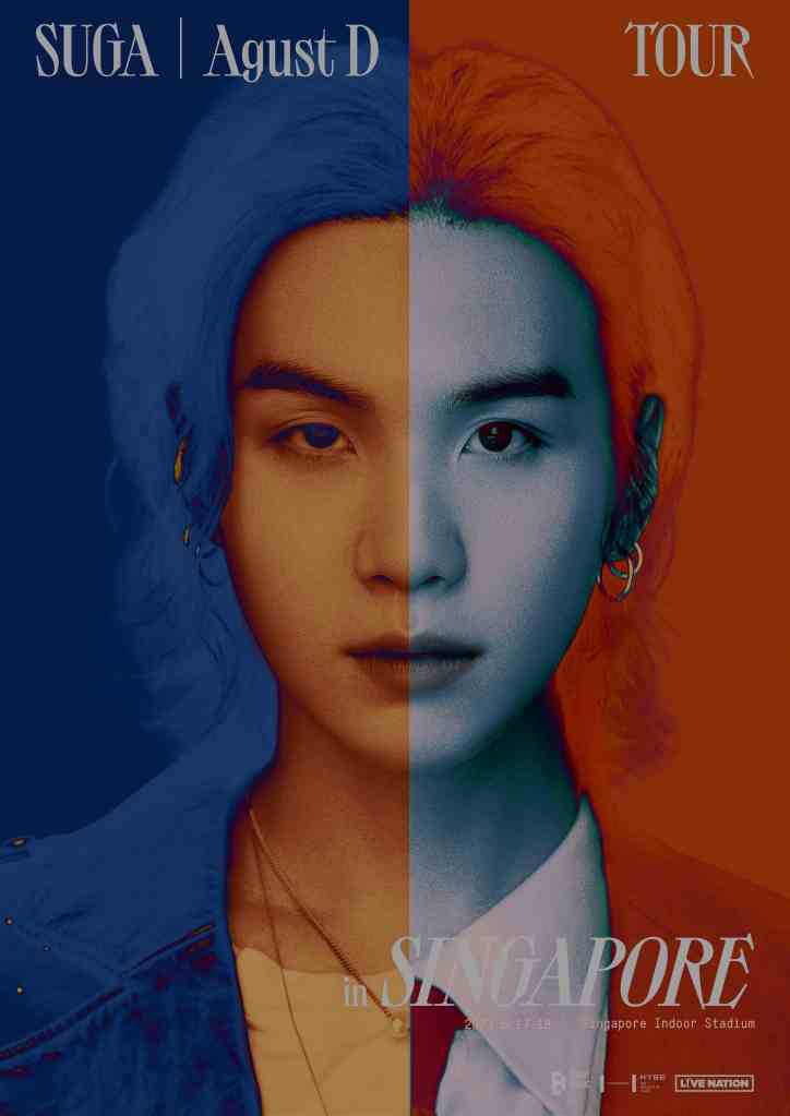 Singapore, 2023 – SUGA of 21st century pop icons BTS is embarking on his first-ever solo world tour! He is the first BTS member to tour on his own. Produced by HYBE, BIGHIT MUSIC and Live Nation, the tour is set to kick off in the U.S. in April, before coming to Asia in May and June. SUGA | Agust D TOUR IN SINGAPORE will take place at the Singapore Indoor Stadium for 2 nights on 17 & 18 June (Sat & Sun) 2023.