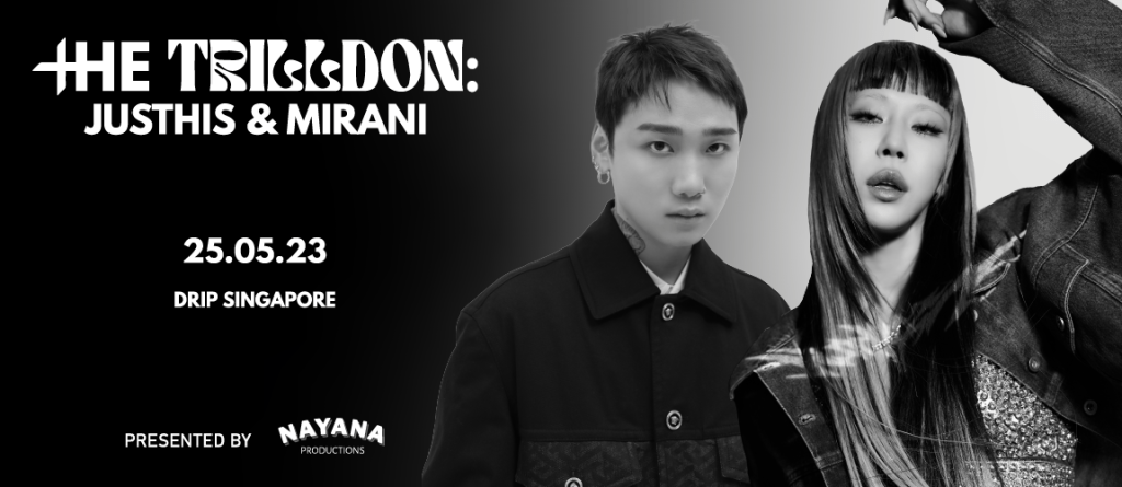 Singapore, 2023 – Rejoice! The Trilldon is back! NAYANA Productions proudly presents their second act – The Trilldon: JUSTHIS & MIRANI. Bob to hip-hop the way it should be enjoyed! The Trilldon – derived from the words “Trill”, a blend of true and real, and “Don” meaning King. A specially curated experience, “ The Trilldon” is a one-of-a-kind performance for fans of live hip-hop. Enjoy your favorite music in a trendy club setting with world-renowned K hip-hop artists! With the successful wrap-up of the first show back in December 2022 featuring legendary hip-hop duo, Dynamicduo, the hip-hop series is back with their second show this coming May!