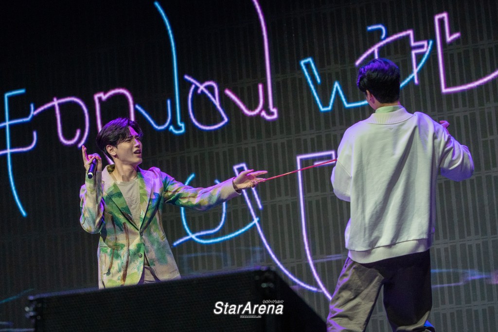 Fans also got to catch their competitiveness at play during the various stage games like Chopstick Pro, which tested their chopstick skills as they stacked cups using chopsticks, with New winning as Tay struggled with his chopstick skills. Another game was Bonded with Love where they competed to roll in the longest amount of cloth/ribbon. It was a game inspired by what Polcas often do with the duo’s standee, coiling red thread to tie the 2 of them together but it ended up in a playful fight to emerge as the winner.