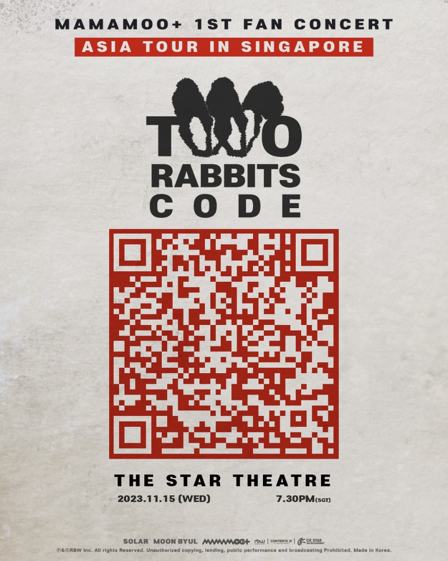 As part of their Asia Tour, MAMAMOO+ members Solar and Moon Byul will stage their first fan concert, ‘[TWO RABBITS CODE]’, at The Star Theatre, Singapore
