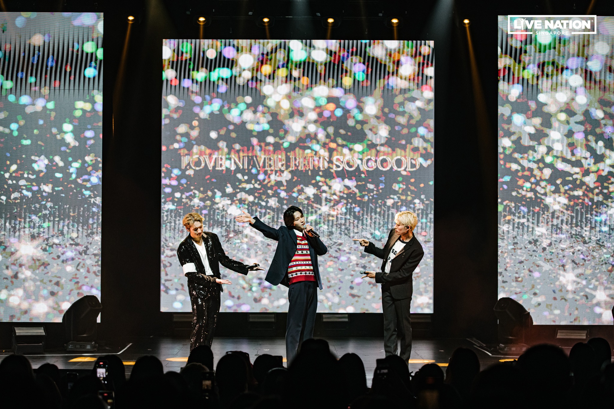 Starting off the show on a high note, the boy band stepped onto the stage and performed ‘Look At Me Now’, ‘Back Down’ and ‘Scared’. P1ece’s synchronised fan chants and screams filled the theatre. The boy band introduced themselves in English and even added a mix of “Singlish”, igniting laughter from the crowd.