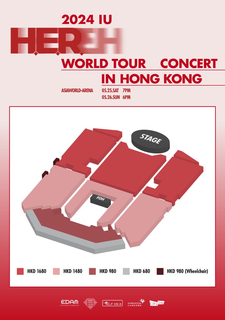 In addition, IU released her 6th mini album “The Winning” on February 20. All songs in the album have topped the major music charts in Korea and around the world, making people truly feel her comeback and popularity. Tickets for “2024 IU H.E.R. WORLD TOUR CONCERT IN HONG KONG” will be on priority sales on Trip.com starting from 10 a.m. on Wednesday, April 10. The public sale will start at 10am on April 15 (Monday) at Cityline Ticket Hotline: (852) 2111-5333.