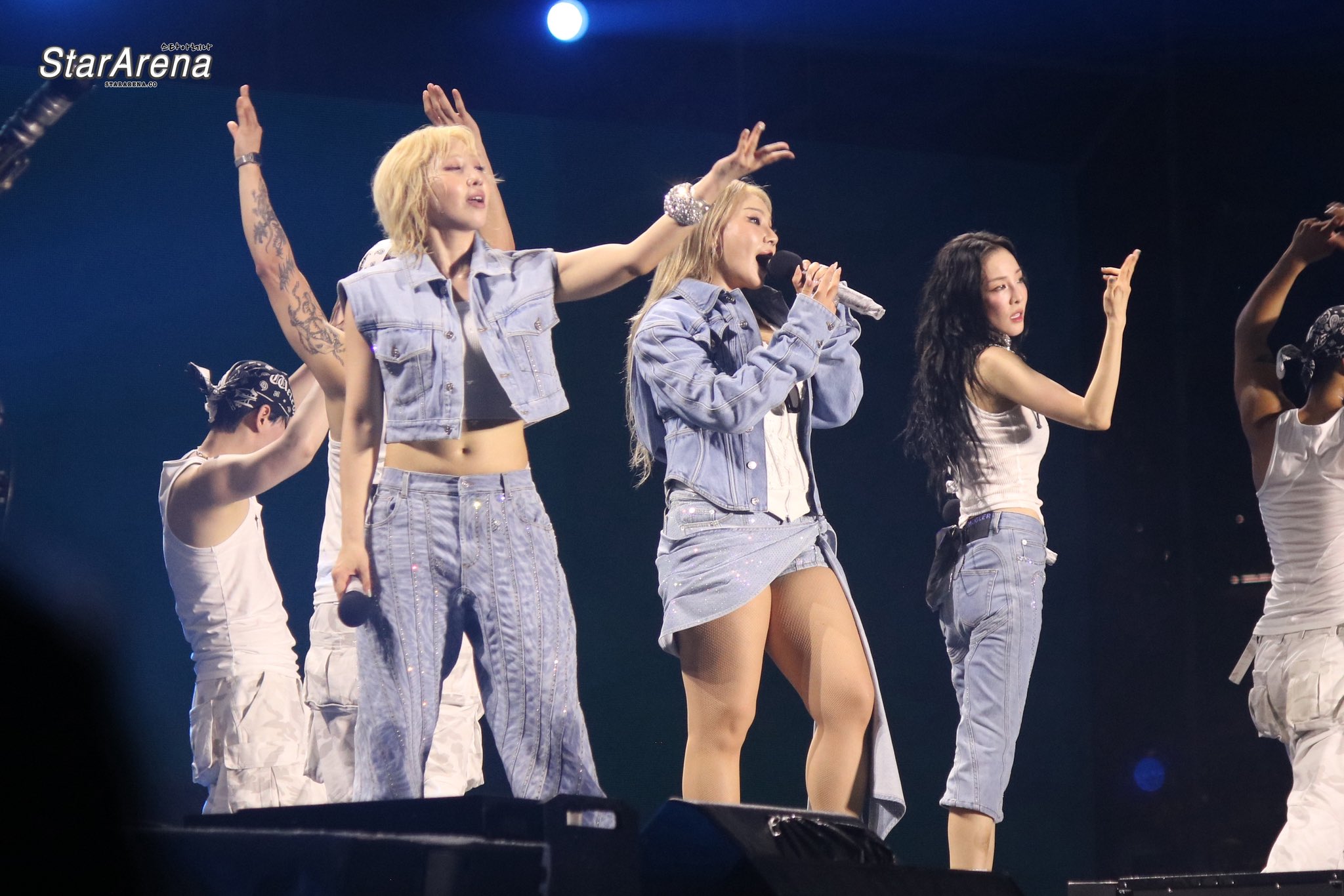 The night reached its peak with the return of 2NE1 — CL, Minzy, and Dara — who reunited on stage (without Park Bom, who sat out due to health reasons). The group opened with Come Back Home, instantly sending waves of nostalgia through the crowd, before launching into Fire and Clap Your Hands.
