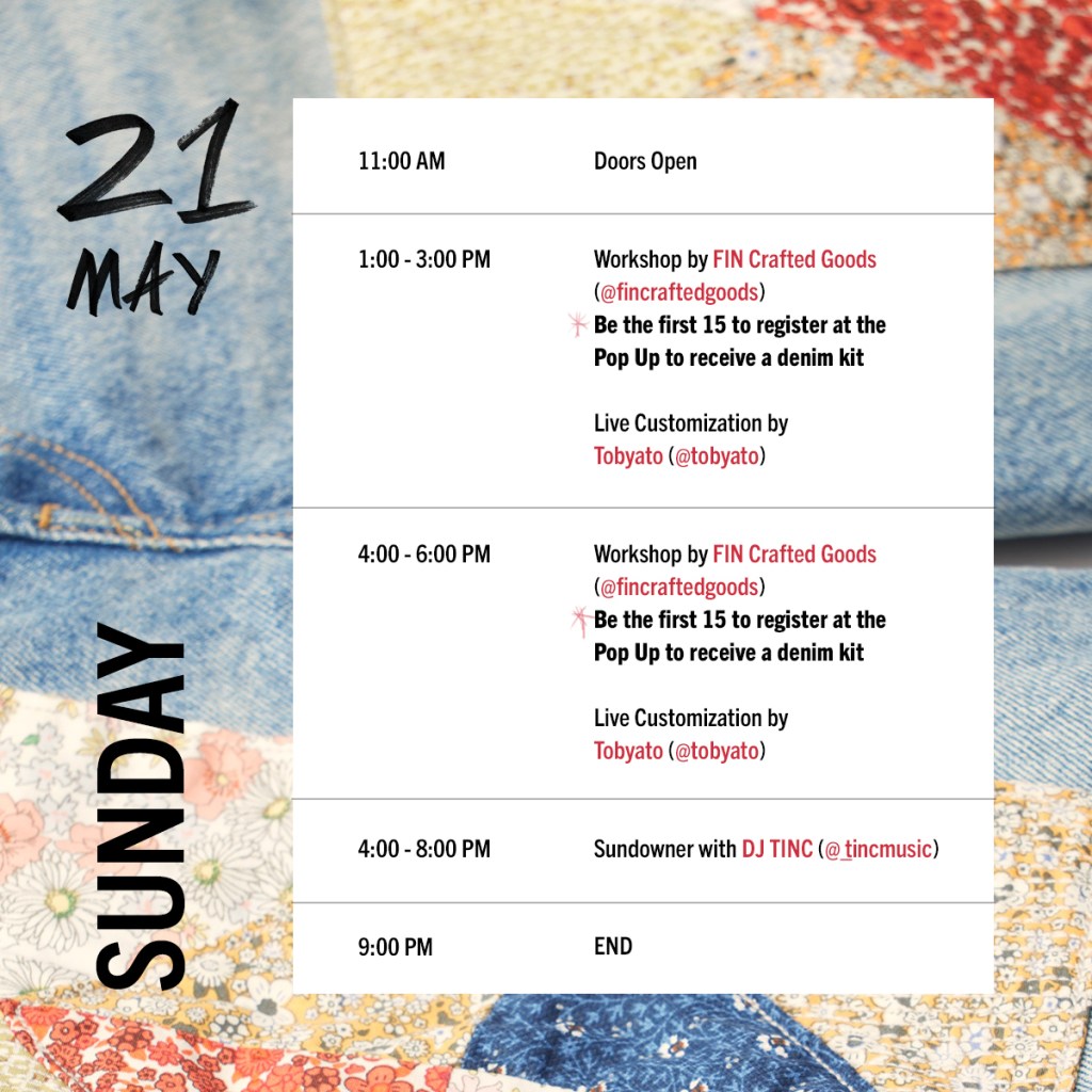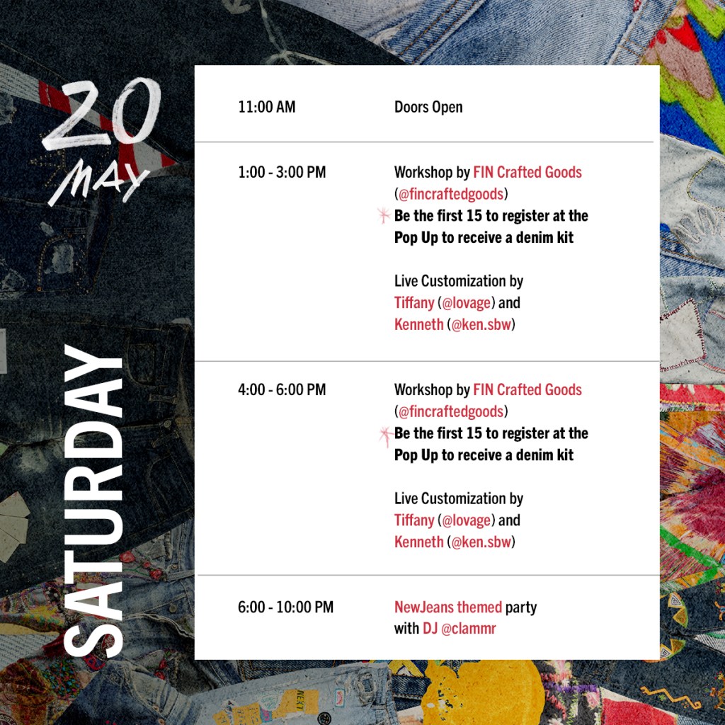 - Denim customisation with patches and embroidery at the Levi’s® Tailor Shop or pop-up-exclusive flash designs by local artists Lovage & Ken and Tobyato